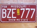 ”BZE 777” 87’ ミズーリ州のUSEDライセンスプレート