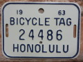 「1963 HONOLULU BICYCLE TAG 」 ホノルル バイクタグ 24486/白