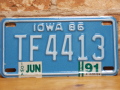 91’ アイオワ州のモーターサイクルのライセンスプレート、