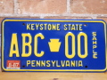 ”ABC・00” 87' ペンシルベニア州サンプルナンバープレートです。