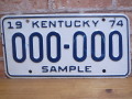 ”000・000” 1974’ケンタッキー州のサンプルライセンスプレ-ト