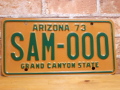 ”SAM・000” 73'アリゾナ州のUSEDライセンスプレート