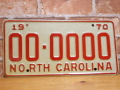 ”00・0000” 70' ノースカロライナ州のUSEDナンバープレート