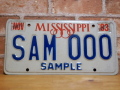 ”SAM 000” 83’ミシシッピ州のUSEDライセンスプレート